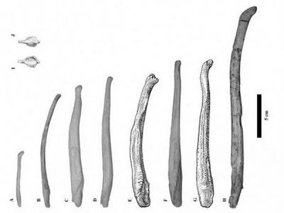 此图表比较各种古代熊骨骼化石的阴茎尺寸。H显示的即为英达尔托德斯熊的尺寸...