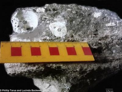 一块哺乳动物头骨化石,牙齿窝里的沉积物,原来是史前蜜蜂筑的巢穴。图片来源:uux...