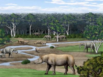 披氏无角犀生态环境复原(陈瑜绘) 塔昌化石地点的位置和剖面(邓涛供图) ...