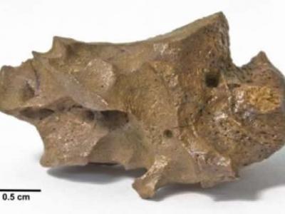 一块哺乳动物头骨化石,牙齿窝里的沉积物,原来是史前蜜蜂筑的巢穴。图片来源:uux...