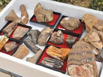 台南市左镇地区出土丰富的象类化石 化石采集家王良杰日前在台南左镇菜寮溪河床,...