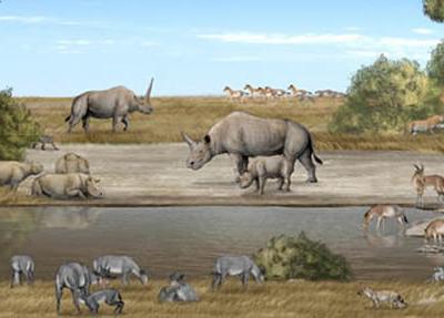 已绝灭的真板齿犀(Elasmotherium)在其额骨上具有一只2米长的角,它一直生存到更新...