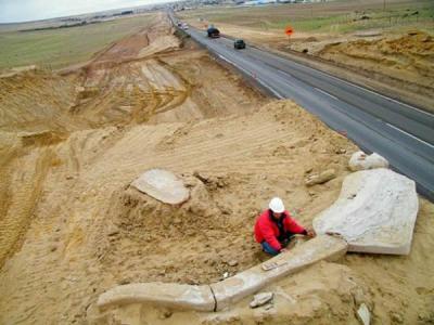 格雷化石遗址的第一具短脸熊颅骨化石 格雷化石遗址(Gray Fossil Site)化石挖掘...