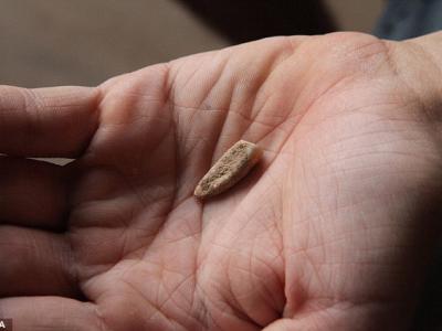 一名研究人员展示这颗青年考古学家发现的珍贵人类牙齿化石 考古学家在托塔维尔...