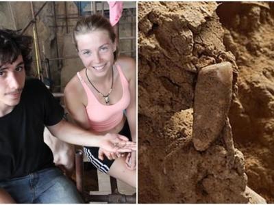 两名考古学生发现56万年历史人类牙齿(手上及右图)。 暂时未知牙齿是属于男性...