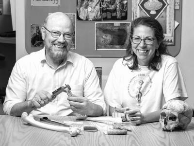 考古学家David Anthony(左)和Dorcas Brown测量了一副来自欧洲大草原的骨架。(...