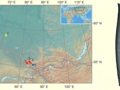 1: Ust’-Ishim; 2: Chagyrskaya 洞; 3: Okladnikov洞; 4: 丹尼索沃 洞; 5: Kara...