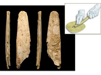 两根史前鲸骨鱼叉(图片来源:uux.cn若因维尔桑巴基考古博物馆)(神秘的地球uux.c...
