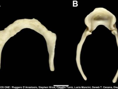 尼安德特人的舌骨——一块马蹄形的在颈部的骨头,看起来与现代人的非常相似,目前...