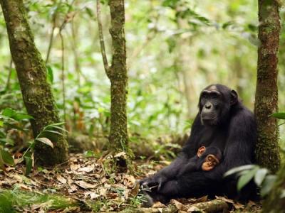 来自乌干达基巴莱国家公园的黑猩猩妈妈Jolie和宝宝Zawinul帮助揭示了黑猩猩的平均...
