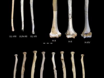 胡瑟裂谷中发现的海德堡人成年个体肢骨 海德堡人(左)、尼安德特人(中)和克...