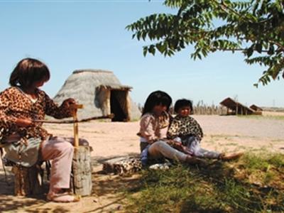 三万年前,生活在水洞沟的史前人类采取软木做底硬木做钻的取火方式。 实景演绎...