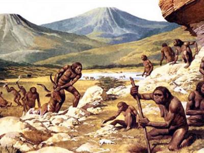 艺术家描绘的史前人类。考古学家约翰•霍夫克说,大脑朝着超级大脑的转变使...