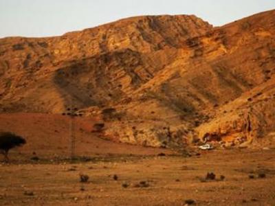从东北看去的杰贝尔法亚 (Jebel Faya) 北部景观。杰贝尔由晚第三纪的石灰岩与燧石...
