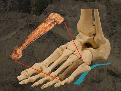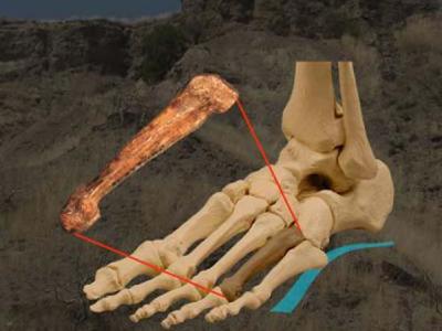 南方古猿阿法种(AL 333-160)第四跖骨在脚骨骼中的位置 (神秘的地球www.uux.c...