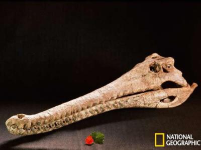 肯尼亚博物馆展出的一具史前鳄鱼头骨 据美国国家地理网站报道,最新一项研究...