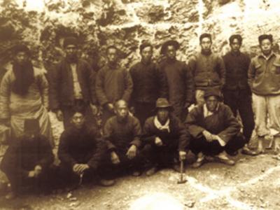 1936年,贾兰坡(右一)与技工在猿人洞发掘现场。 1985年在北京大学考古系获...