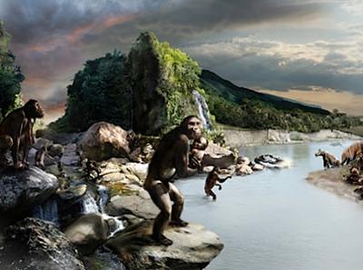 南方古猿生活复原图 1989年11月15日,发现于湖北郧县的“南...