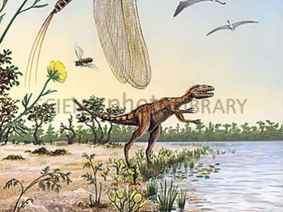 艺术家在距今已有2.15亿年的化石森林国家公园的环境中重建了Sonselasuchus cedrus。...