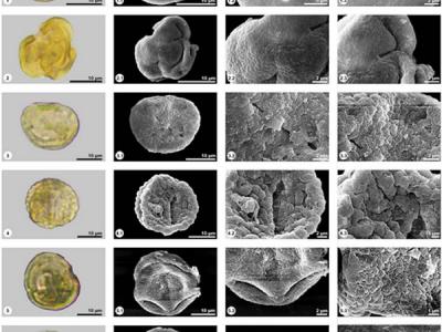 植物化石孢粉的照片1, 2, 3, 4. Quercus. 5, 6. Cyclobalanopsis. 云南文山晚...