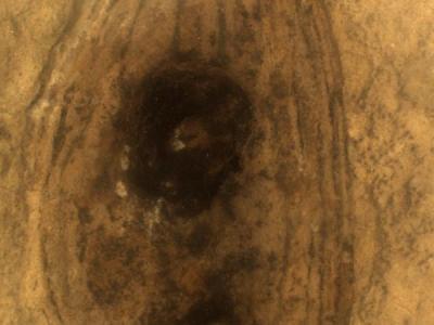一块哺乳动物头骨化石,牙齿窝里的沉积物,原来是史前蜜蜂筑的巢穴。图片来源:uux...