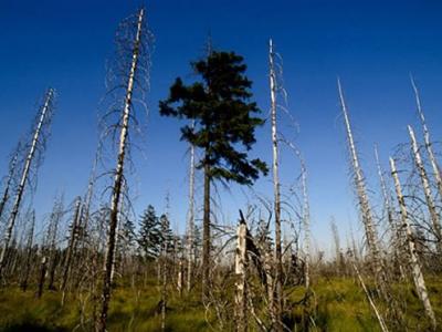 1991年,捷克斯洛伐克北部“黑三角”地区因有毒酸雨毁灭的树木 英国科学家的...