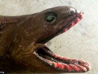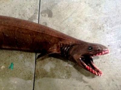 皱鳃鲨外表骇人,其祖先可追溯至8千万年前。 皱鳃鲨有多达300只尖牙 渔民在...