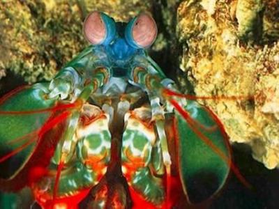 螳螂虾 螳螂虾(mantis shrimp)既非虾,也非螳螂,在长达4亿年的进化中没有任...