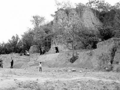 鸡公山的山体遭到破坏,炸山取石已接近遗址(山的背面)的控制地带 乐平市在历史上...