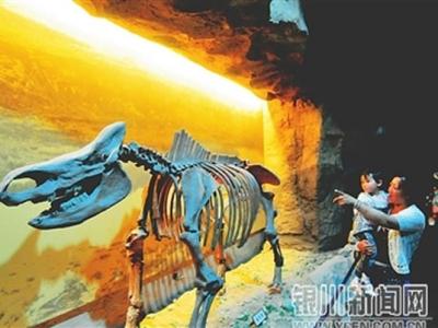 游客在水洞沟遗址博物院实景体验3万年前古人类的生活环境 6月18日,历时3年多建...