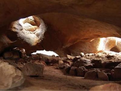 空谷岩棚(Hollow Rock Shelter)的内部 石器的发展提升了大脑能力,来自瑞典隆...