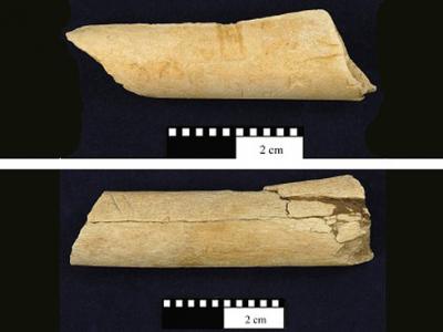 发现340万年前人类祖先使用石器的证据 骨刀中还发现夹有石片,可能是用于增加...