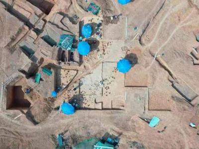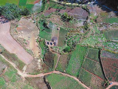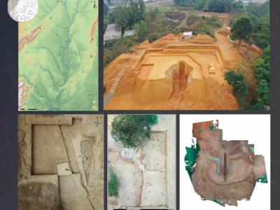 甘棠箐遗址及发掘探方航拍照。老龙洞古人类居住洞穴遗址发掘现场。 (神秘的地...