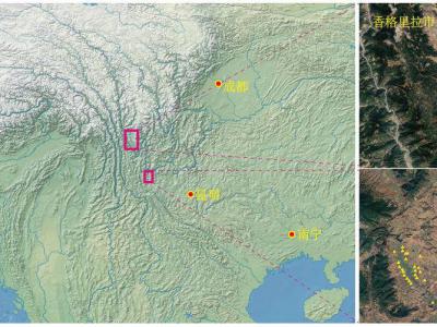 滇西北地区2022年度调查发现的旧石器地点分布图。宾川盆地调查发现的石制品。香格里...