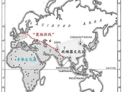 莫维斯识别出来的旧石器时代早期东西方不同的文化区:西方手斧文化区和东方的砍砸器...