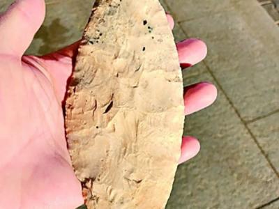 宁夏鸽子山遗址采集的精美两面器(高星摄/光明图片)北京周口店出土的修理把手石刀...