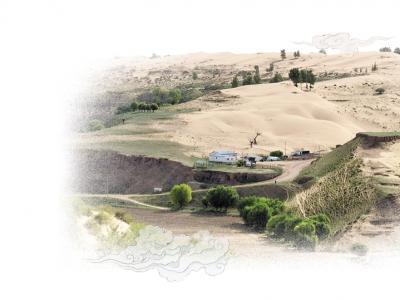 遗址远眺。2004年8月,董光荣(左一)、黄慰文(左二)等专家在萨拉乌苏地区补点考...