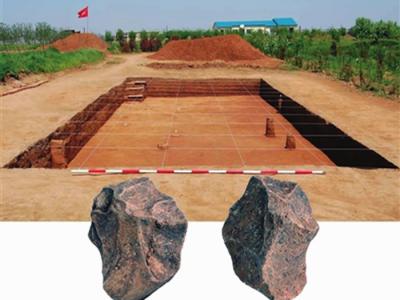 沈阳农业大学后山11万年前古人类遗址考古发掘现场和两块打制石...