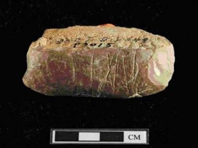 宁夏水洞沟发现中国旧石器遗址中首件非有机质遗物上刻划痕迹的石器 这是刻划痕...