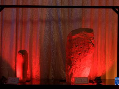这是2月22日在约旦首都安曼拍摄的考古发现石碑。这是2月22日在约旦首都安曼拍摄的绘...