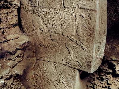 从东南方向所见的哥贝克力石阵D楼的一根柱子。(神...