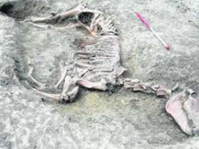 迪高特城西边考古遗址中发现的中世纪马骨架 牛津大学的考古学家Taylor Wimpey在...