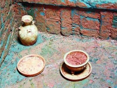 山东汉代墓穴中出土彩绘青铜盆