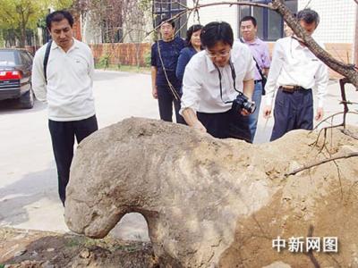 山东周村出土明代石马 记者今天从山东省淄博市周村区文物部门了解到,当地施...