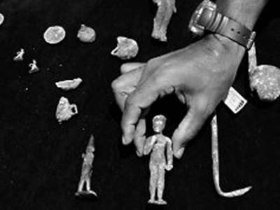 在埃及亚历山大港,“杜达公主”考古船上展示的最新出土的史前器物。 法国水下...