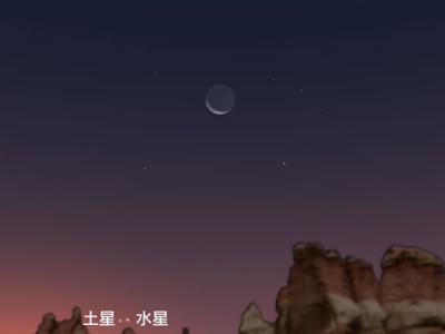 1月13日土星、水星、月亮、火星和木星会出现在日出前的东方(...