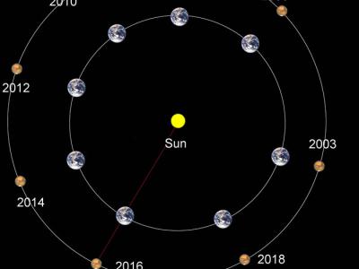 2016年5月22日火星冲日 (神秘的地球uux.cn报道)行星与太阳的相对位置正好在地...