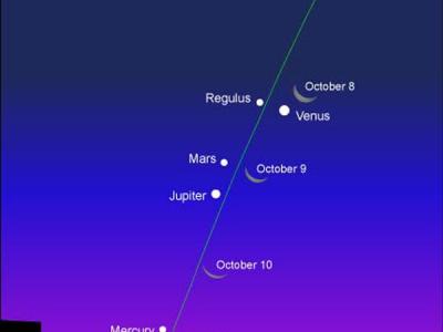 2015年10月10日木星合月 (神秘的地球报道)10月10日天亮前,可见农历28的残月移...