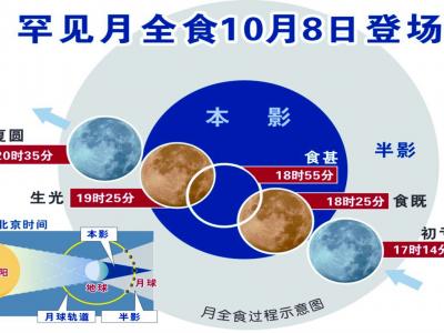 (神秘的地球报道)中科院紫金山天文台预报,北京时间10月8日下午5时14分将上演月全...