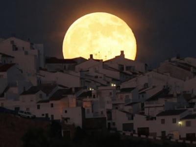 皎洁巨大的“超级月亮”在西班牙南部加的斯冉冉升起 (神秘的地球报道)中新网:...